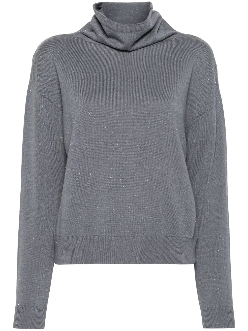 lurex sweater Highlights - Blue-grey - Virgin wool blend - Knitted construction - Ribbed trim - High neck - Lurex detailing - Drop shoulder - Long sleeves - Straight hem Made in Italy Composition Virgin Wool 60%, Silk 17%, Viscose 13%, Cashmere 9%, Polyester 1% SIZE & FIT Model measurements Height 5 ft 9 in(1.75 m) Bust/Chest 31.88 in(81 cm) Hips 34.64 in(88 cm) Waist 24.01 in(61 cm) FittingInformation Designed for a relaxed fit, this piece allows for comfort and movement when worn The ribbed hem offers a close, comfortable fit Made with a midweight knit, this piece offers some stretch Washing instructions Hand Wash