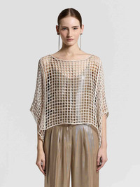 SKU: 711-003434 02 BRAND ID: E99104F12R-9234T 's Top By Peserico • Regular fit • Made from a blend of cotton and lurex • Boat neckline • 3/4 kimono sleeves • Composition: 65% cotton, 28% viscose, 6% metal, 1% polyester • Made in: Italy