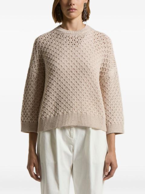 open-knit sweater Highlights - Beige - Open knit - Three-quarter sleeves - Round neck - Ribbed hem - Ribbed cuffs Made in Italy Composition Wool 100% Washing instructions Read Manufacturer Guidelines