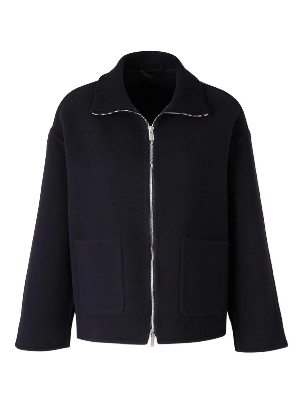 patch-pocket jacket Highlights - Dark blue - Spread collar - Front zip closure - Patch pockets - Felted finish - Virgin wool blend Made in Italy Composition Virgin Wool 70%, Polyamide 20%, Cashmere 10% Washing instructions Dry Clean Only