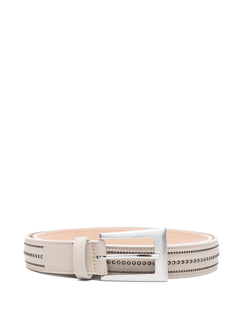 perforated calfskin belt Highlights - Beige - Calfskin leather - Perforated detailing - Silver-tone buckle - Pointed tip - Rectangular buckle Made in Italy Composition Calf Suede 100% SIZE & FIT Measurement Maximum Length 41.33 in(105 cm) Minimum Length 37.4 in(95 cm) WIDTH 1.18 in(3 cm)