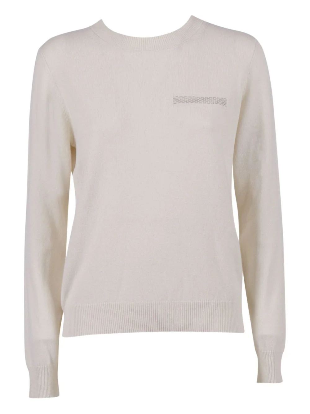embellished sweater Highlights - Off-white - Fine knit - Long sleeves - Ribbed cuffs - Ribbed hem - Embellished panel Made in Italy Composition Virgin Wool 55%, Silk 30%, Cashmere 15% Washing instructions Read Manufacturer Guidelines