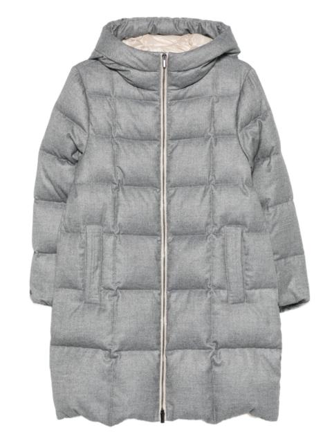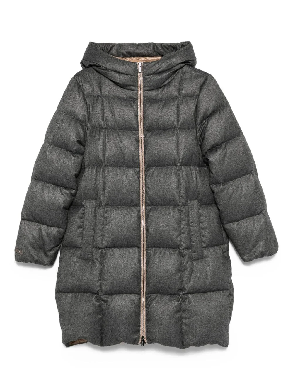 hooded quilted coat Highlights - Grey - Quilted design - Hooded neckline - Zip fastening - Long sleeves - Straight hemline Made in Italy Composition Outer: Polyester 70%, Viscose 30% Lining: Polyamide 100%, Goose Down 90%, Goose Feather 10% SIZE & FIT Model measurements Height 5 ft 9 in(1.75 m) Bust/Chest 34.64 in(88 cm) Hips 36.61 in(93 cm) Waist 26.37 in(67 cm) Washing instructions Machine Wash