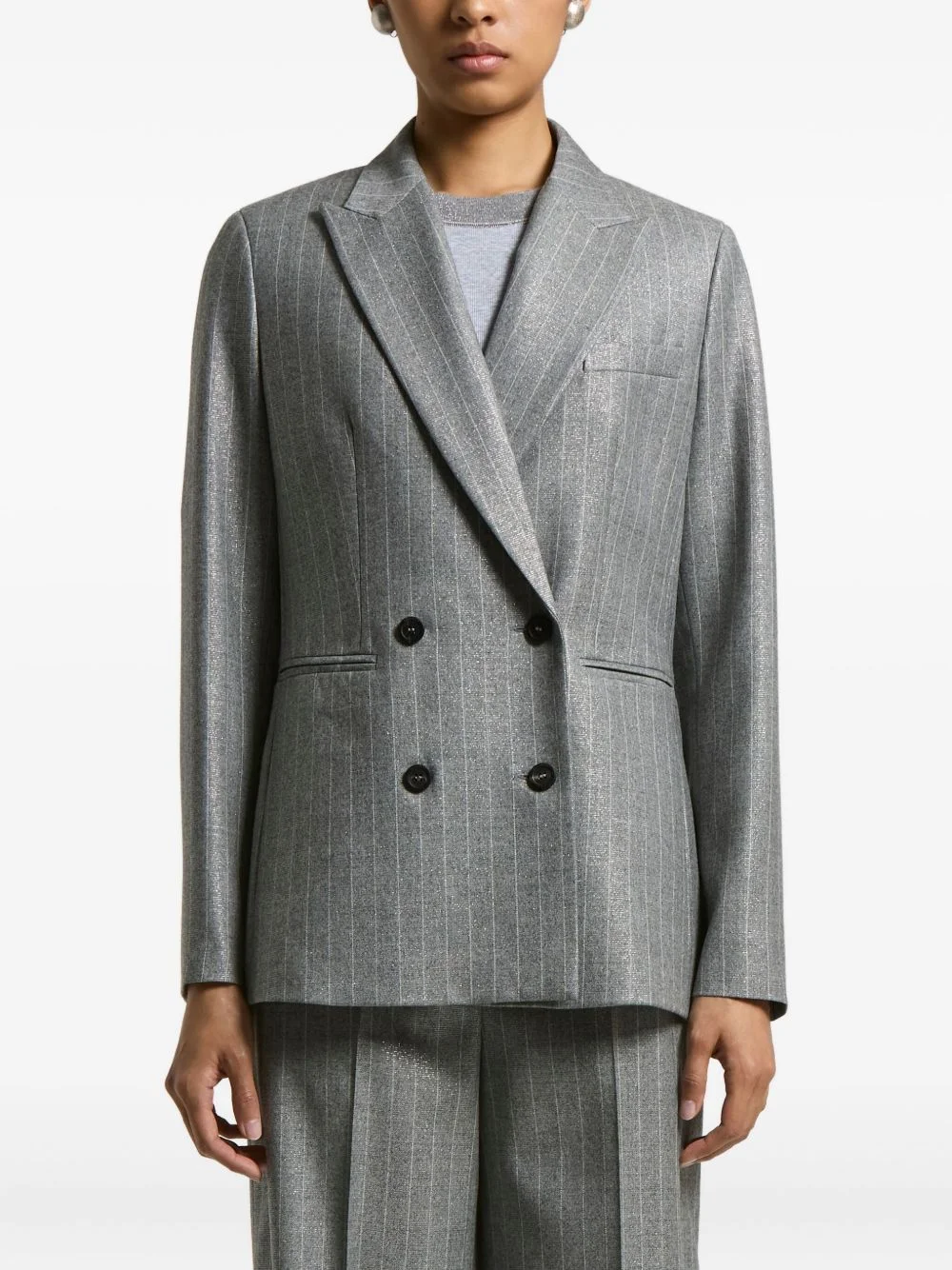 pinstripe double-breasted blazer Highlights - Grey - Pinstripe pattern - Double-breasted closure - Notched lapels - Long sleeves - Straight hemline Made in Italy Composition Fabric 100% Washing instructions Read Manufacturer Guidelines