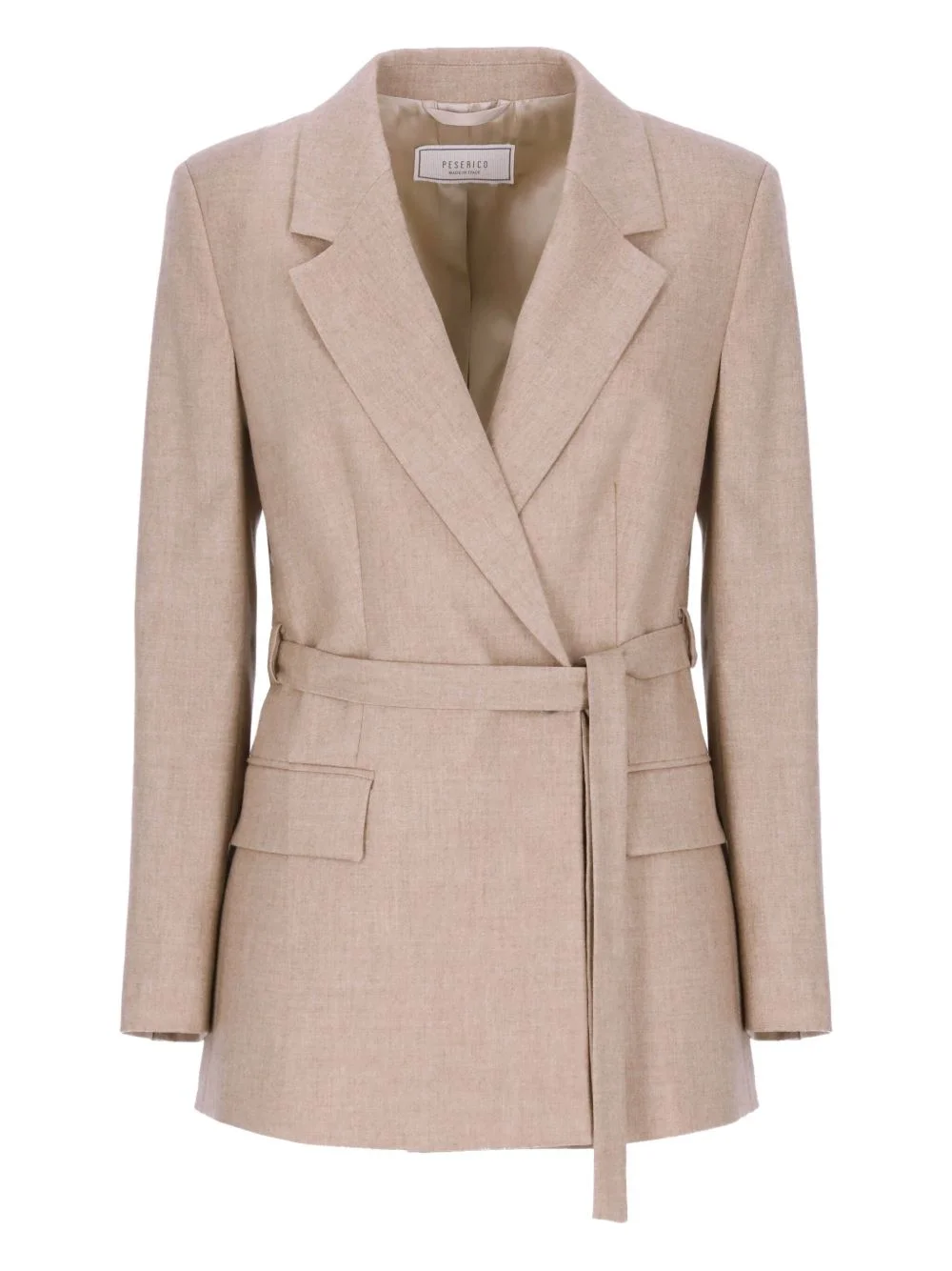 melange-effect belted blazer Highlights - Blush beige - Wool blend - Notched lapels - Front flap pockets - Belt - Double-breasted closure Made in Italy Composition Wool 90%, Lamb Fur 8%, Elastane 2% Washing instructions Read Manufacturer Guidelines