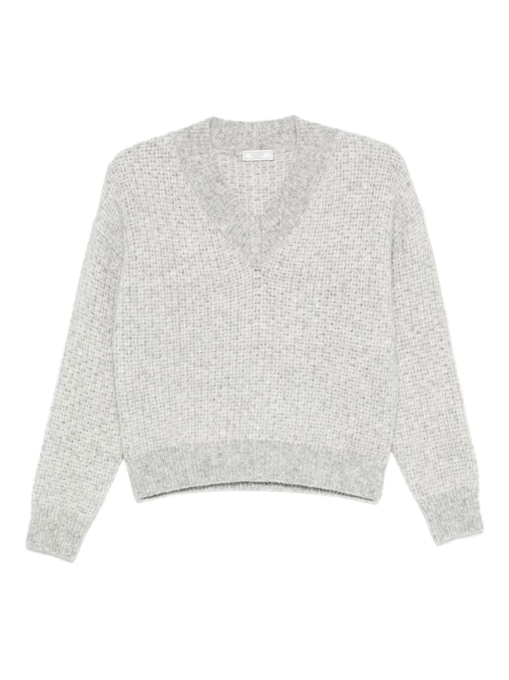 V-neck sweater Highlights - Grey - V-neck - Long sleeves Made in Italy Composition Alpaca 53%, Polyamide 23%, Virgin Wool 19%, Viscose 4%, Metallised Fibres 1% SIZE & FIT Model measurements Height 5 ft 9 in(1.75 m) Bust/Chest 32.67 in(83 cm) Hips 36.22 in(92 cm) Waist 24.8 in(63 cm) Washing instructions Hand Wash