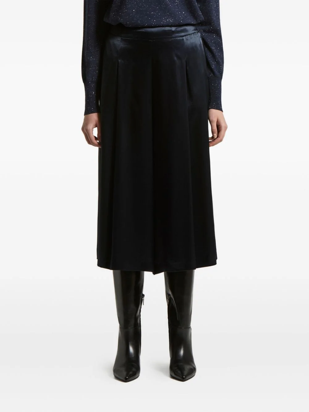 pleated-front satin trousers Highlights - Dark blue - Satin fabric - Pleated front - Elasticated waistband - Side pockets - Wide leg Made in Italy Composition Fabric 100% Washing instructions Read Manufacturer Guidelines