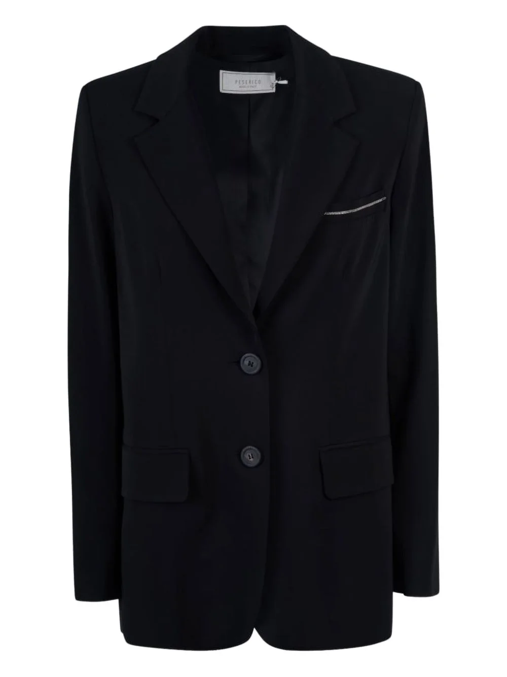 pocket blazer Highlights - Black - Two-button fastening - Flap pockets - Long sleeves - Straight hem Imported Composition Viscose 96%, Spandex/Elastane 4% Washing instructions Read Manufacturer Guidelines