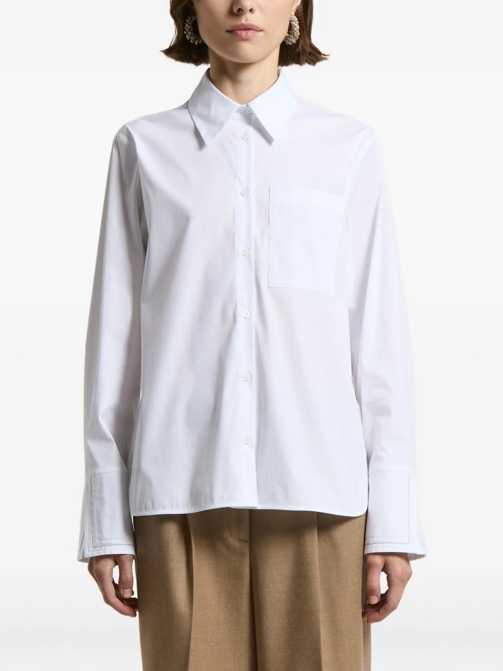 pocket-cuff cotton-blend shirt Highlights - White - Classic collar - Button fastening - Long sleeves - Cuffed sleeves - Chest pocket Made in Italy Composition Cotton 79%, Polyamide 17%, Elastane 4% Washing instructions Read Manufacturer Guidelines