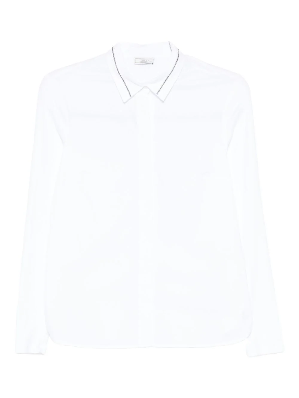 point-collar cotton-blend shirt Highlights - White - Point collar - Long sleeves - Button fastening Made in Italy Composition Cotton 97%, Elastane 3% SIZE & FIT Model measurements Height 5 ft 10 in(1.79 m) Bust/Chest 31.88 in(81 cm) Hips 35.43 in(90 cm) Waist 23.62 in(60 cm) Washing instructions Machine Wash