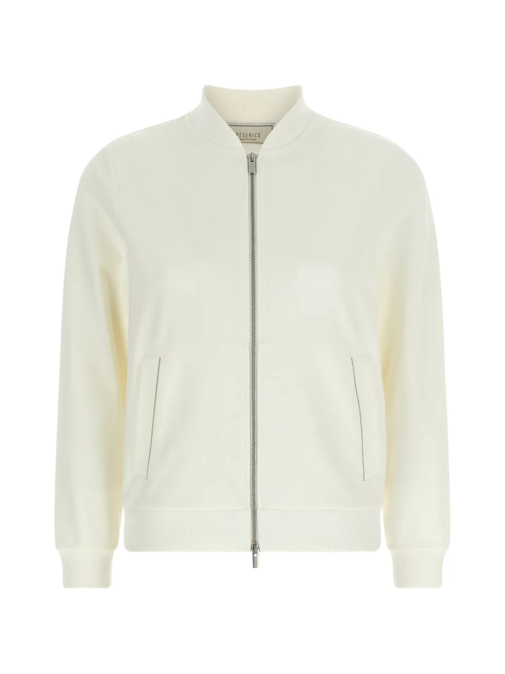 Punto Luce ribbed knit zip sweatshirt Highlights - White - Ribbed knit details - High neck - Zip fastening - Pockets - Long sleeves Made in Italy Composition Cotton 50%, Polyester 43%, Spandex/Elastane 7% Washing instructions Read Manufacturer Guidelines