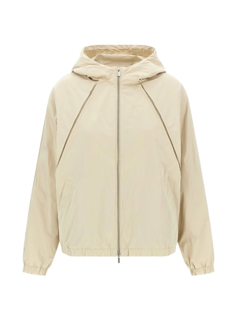 Punto Luce adjustable hooded jacket Highlights - Beige - Adjustable hood - Front zip closure - Long sleeves - Elasticated cuffs and hem - Pockets Made in Italy Composition Polyester 100% Washing instructions Read Manufacturer Guidelines