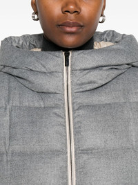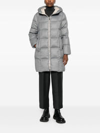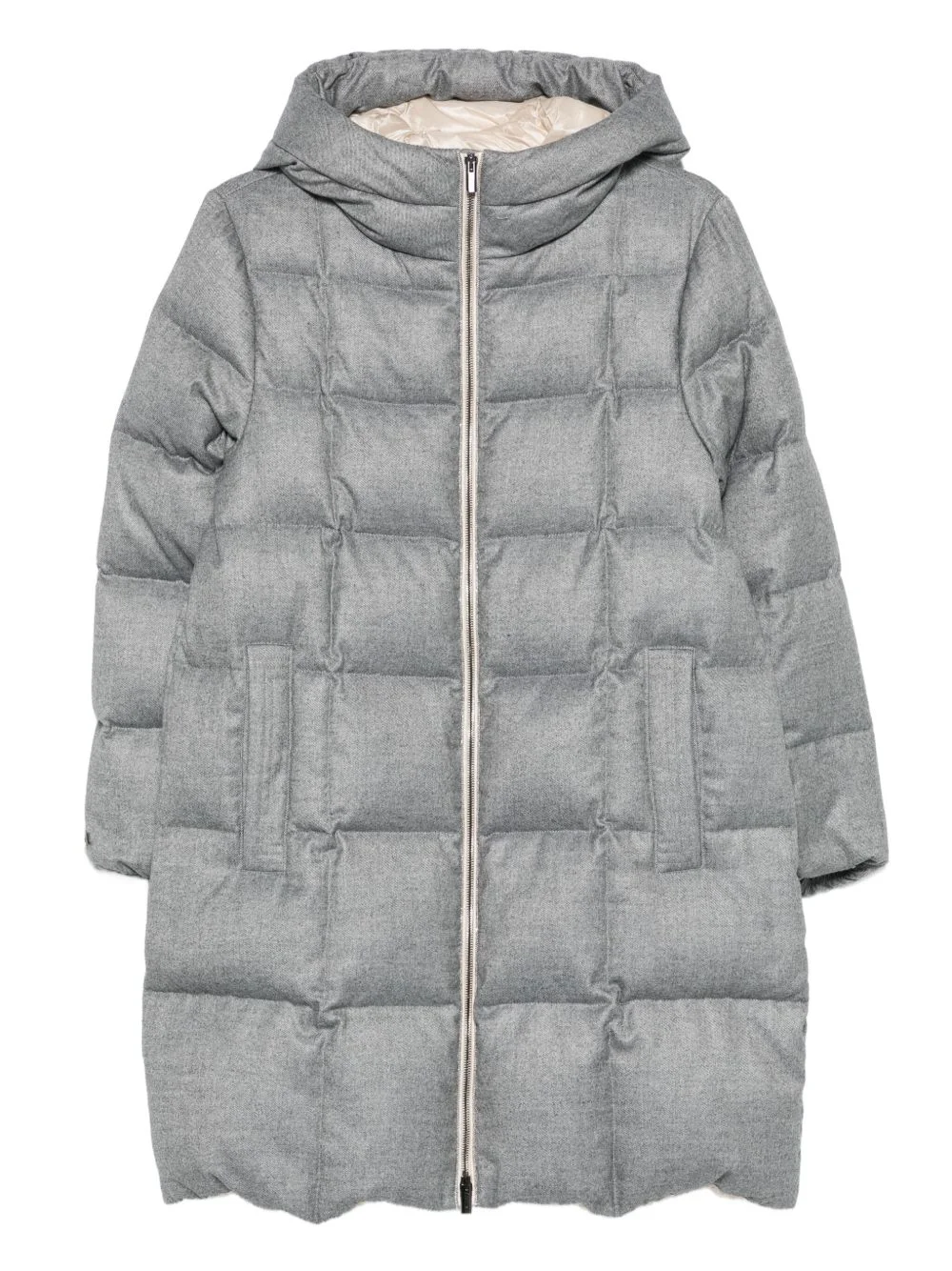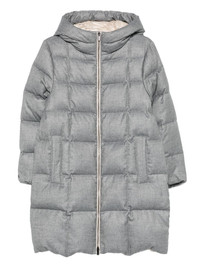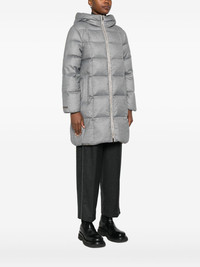 quilted hooded coat Highlights - Grey - Quilted design - Hooded - Zip fastening - Long sleeves - Welt pockets Made in Italy Composition Lining: Polyamide 100%, Goose Down 90%, Goose Feather 10% Outer: Polyester 70%, Viscose 30% SIZE & FIT Model measurements Height 5 ft 11 in(1.8 m) Bust/Chest 31.49 in(80 cm) Hips 36.61 in(93 cm) Waist 24.4 in(62 cm) Washing instructions Machine Wash