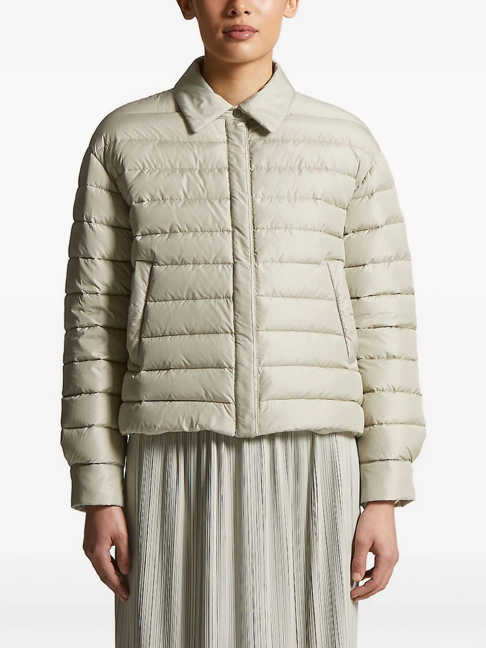 quilted padded jacket Highlights - Green - Quilted design - Shirt collar - Zip fastening - Welt pockets - Long sleeves Made in Italy Composition Fabric 100% Washing instructions Read Manufacturer Guidelines