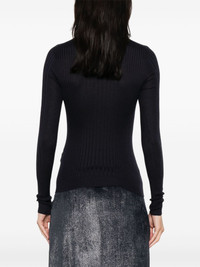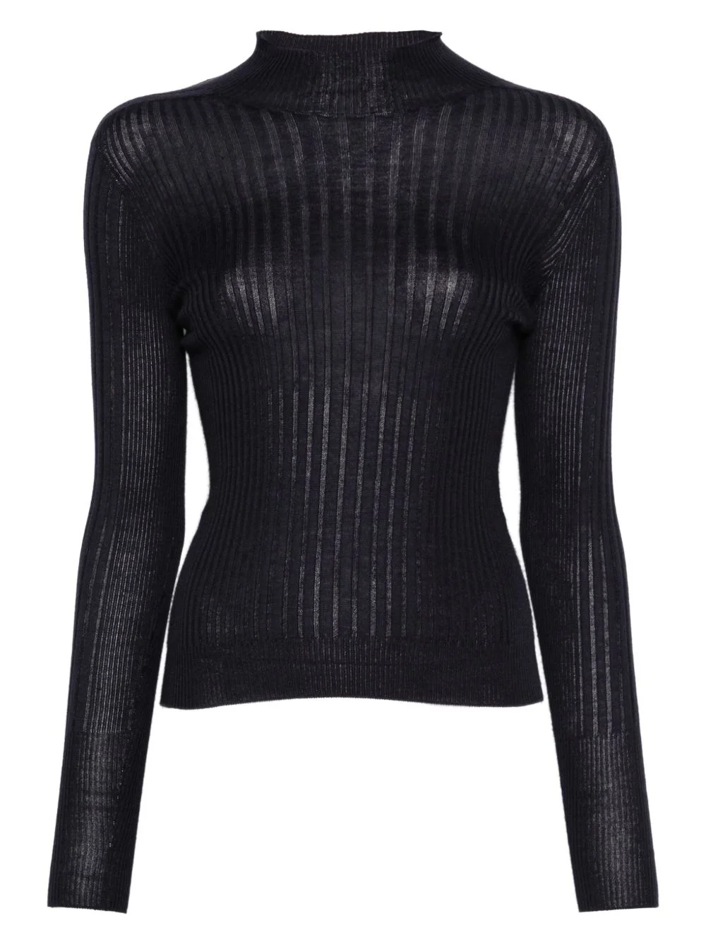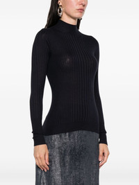 ribbed mock-neck top Highlights - Navy blue - Ribbed texture - Mock neck - Long sleeves Made in Italy Composition Cashmere 70%, Silk 30% SIZE & FIT Model measurements Height 5 ft 10 in(1.78 m) Bust/Chest 33.46 in(85 cm) Hips 36.22 in(92 cm) Waist 23.22 in(59 cm) Washing instructions Hand Wash