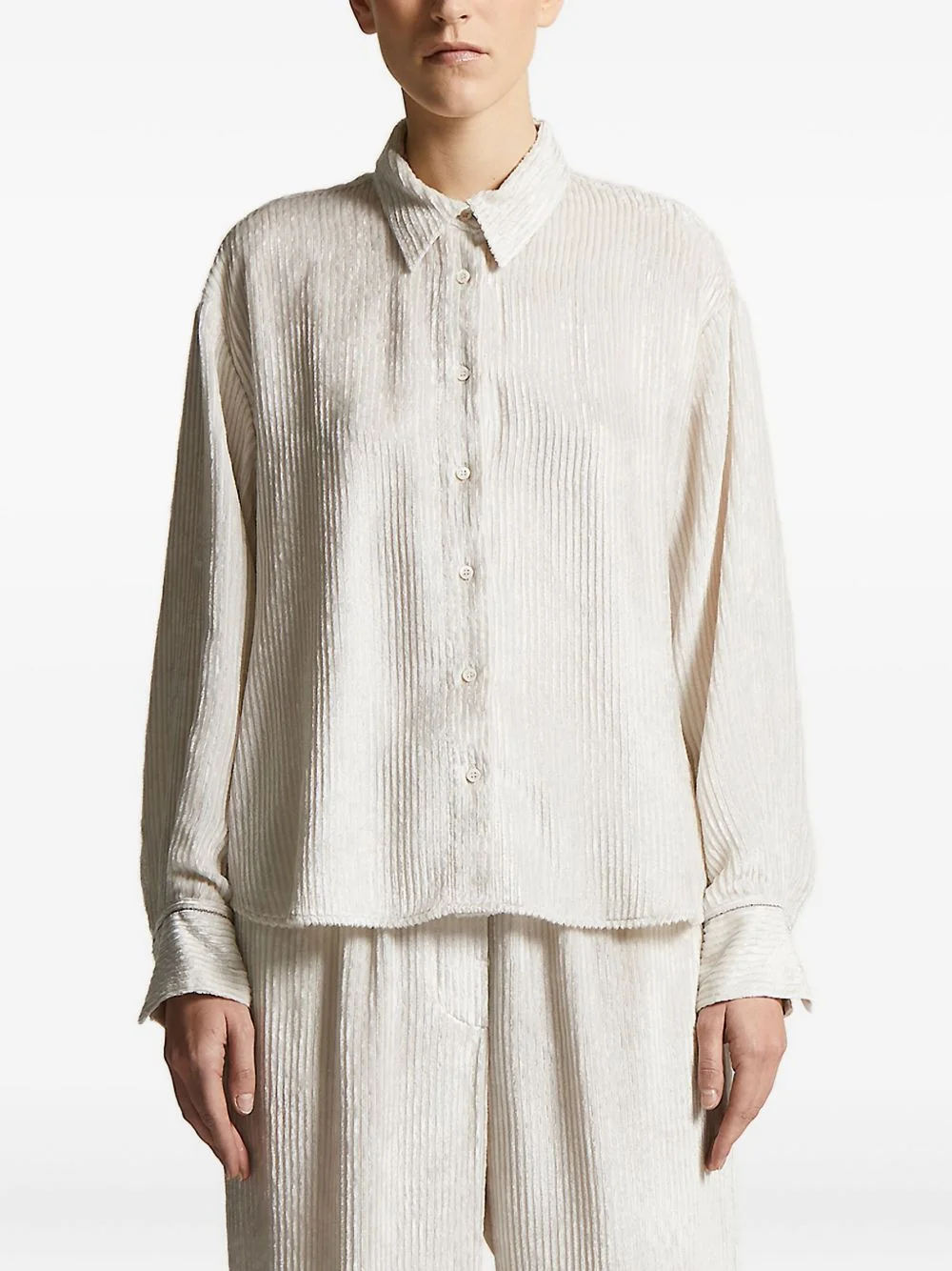 ribbed-texture button-down shirt Highlights - Ivory - Ribbed texture - Button-down fastening - Long sleeves - Cuffed sleeves Made in Italy Composition Viscose 100% Washing instructions Read Manufacturer Guidelines