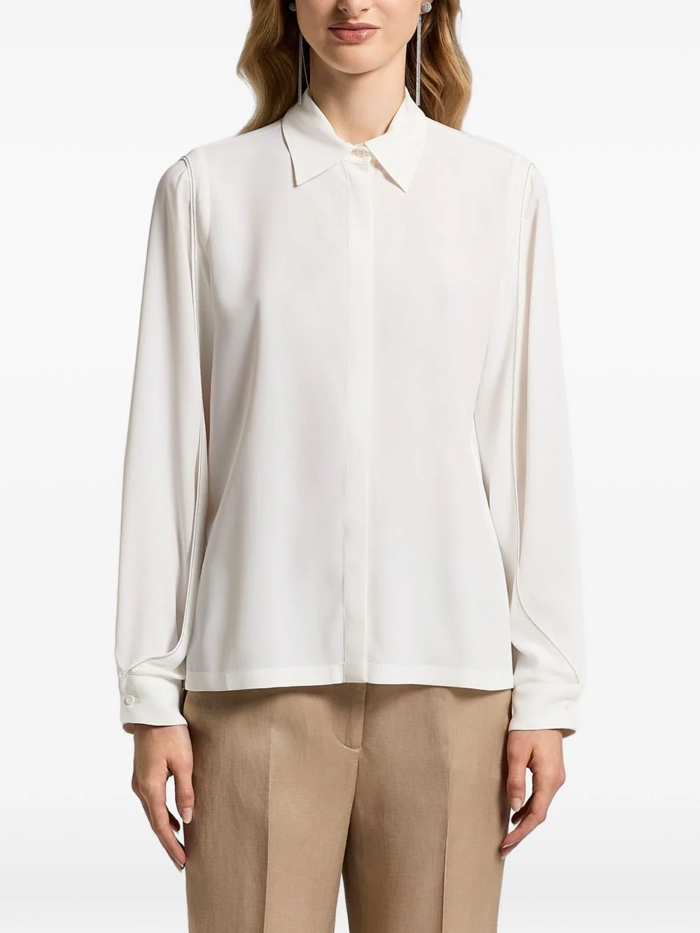 seam shirt Highlights - Solar white - Seam detail - Buttoned cuffs - Classic collar - Long sleeves - Button fastening Made in Italy Composition Acetate 81%, Silk 13%, Elastane 6% Washing instructions Dry Clean Only