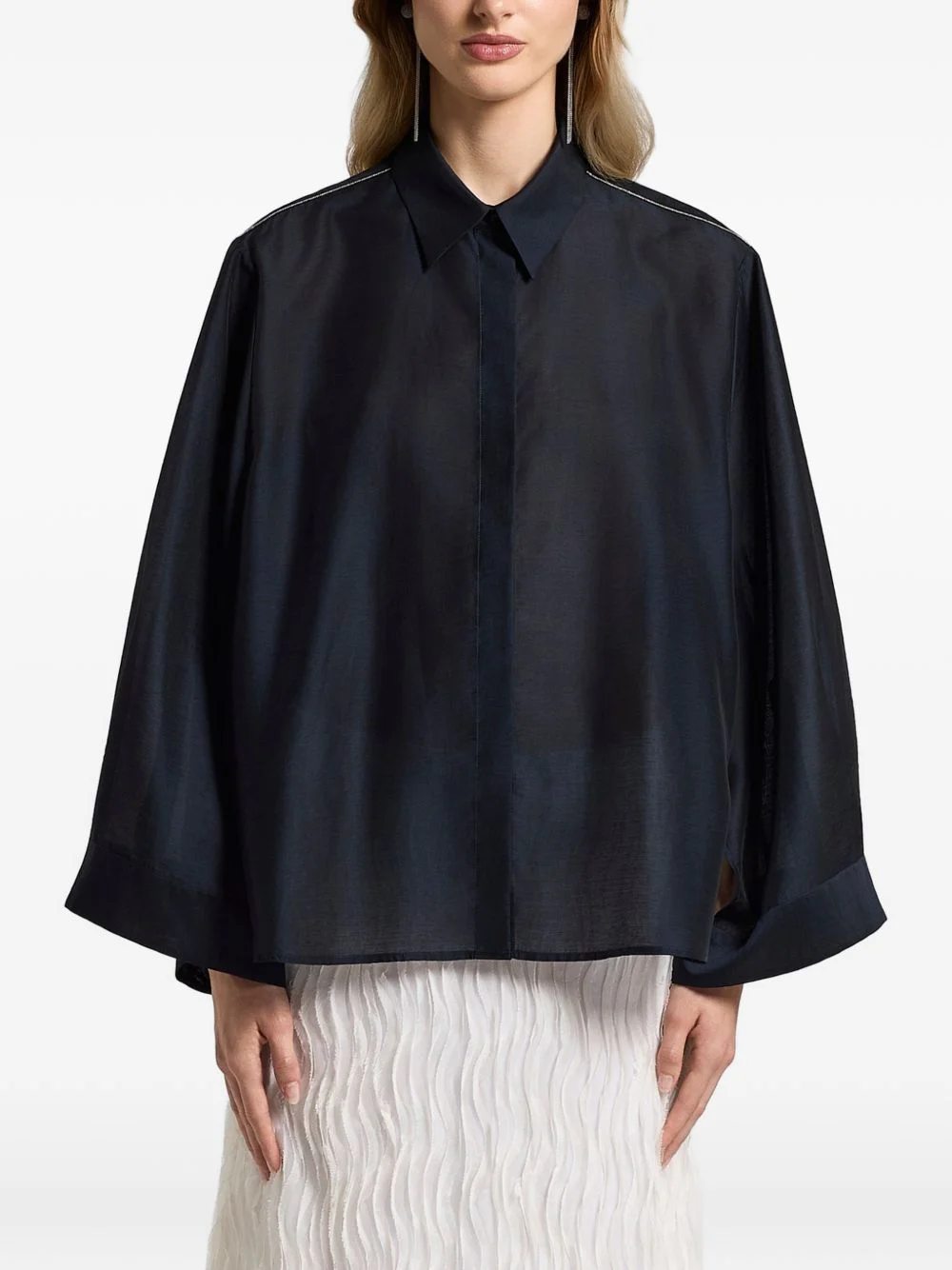 shoulder slit shirt Highlights - Night blue - Shoulder slit - Button fastening - Point collar - Long sleeves - Buttoned cuffs Made in Italy Composition Lyocell 83%, Polyamide 17% Washing instructions Hand Wash