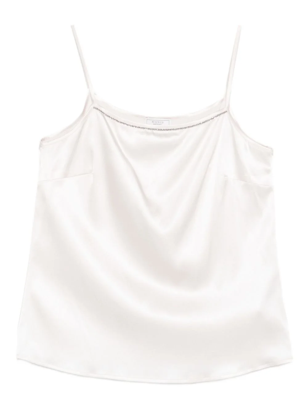 stretch-silk top Highlights - Pink - Satin texture - Spaghetti straps - Straight neckline - Embellished neckline Made in Italy Composition Silk 97%, Elastane 3% SIZE & FIT Model measurements Height 5 ft 10 in(1.79 m) Bust/Chest 31.88 in(81 cm) Hips 35.43 in(90 cm) Waist 23.62 in(60 cm) Washing instructions Machine Wash