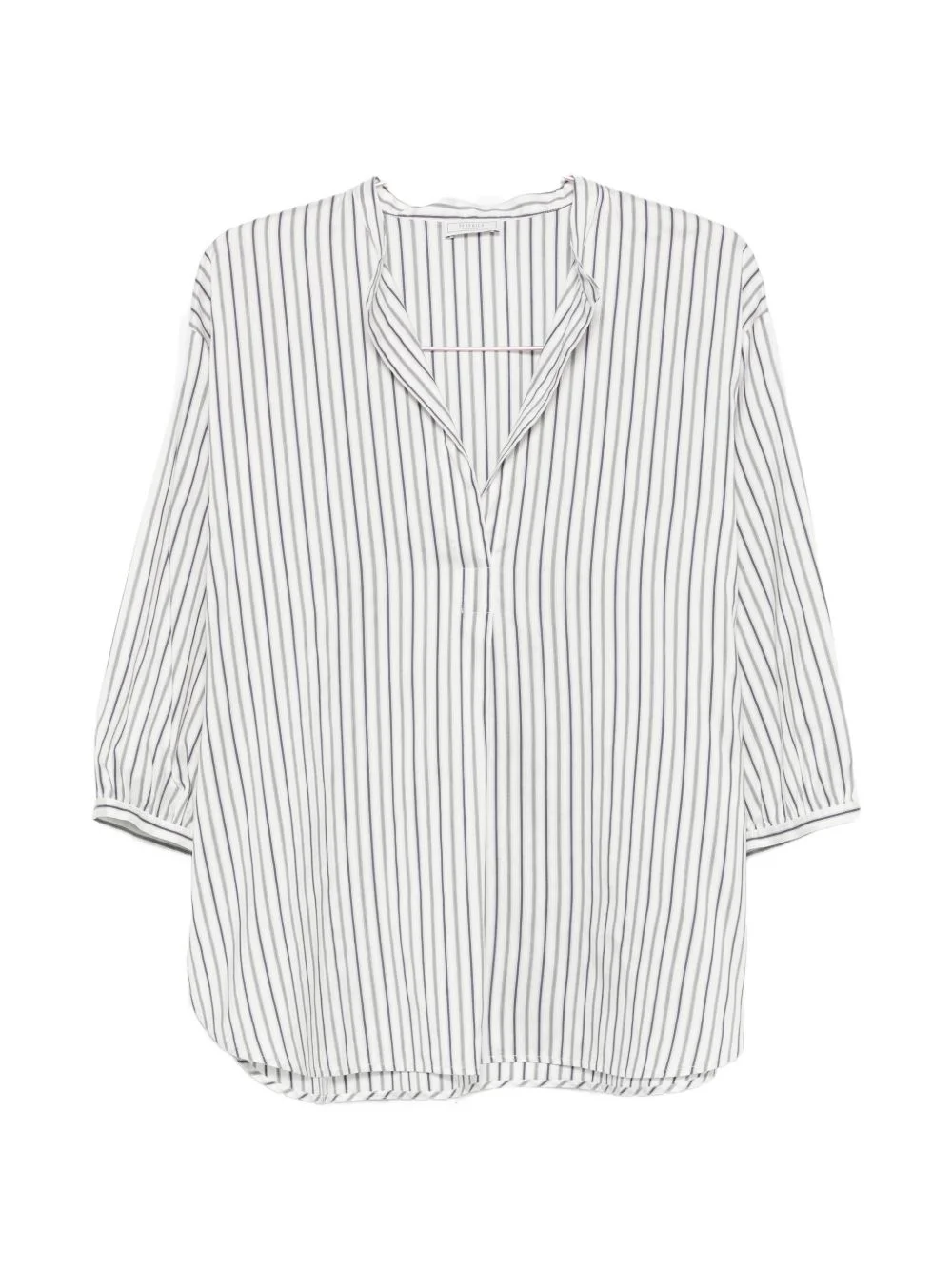 striped cotton blouse Highlights - White - Cotton - Vertical-stripe pattern - V-neck - Three-quarter length sleeves - Elasticated cuffs - Curved hem - Relaxed fit Made in Italy Composition Cotton 76%, Silk 24% Washing instructions Hand Wash