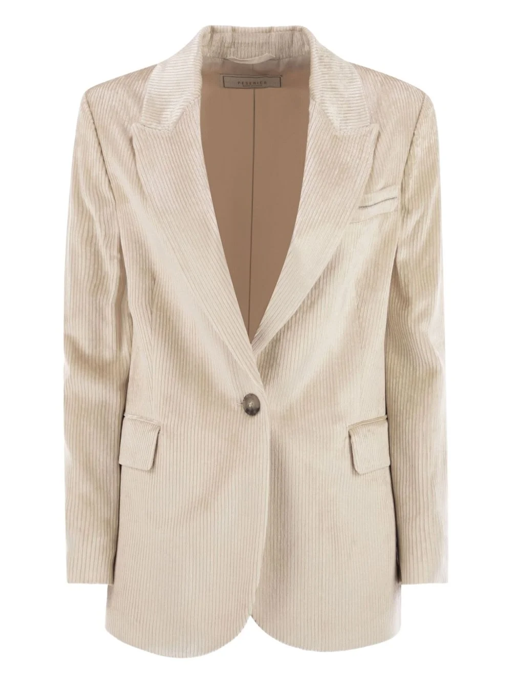 stripes-texture blazer Highlights - Light beige - Peak lapels - Single-breasted - Flap pockets - Single button fastening Made in Italy Composition Outer: Viscose 98%, Elastane 2% Lining: Viscose 100%
