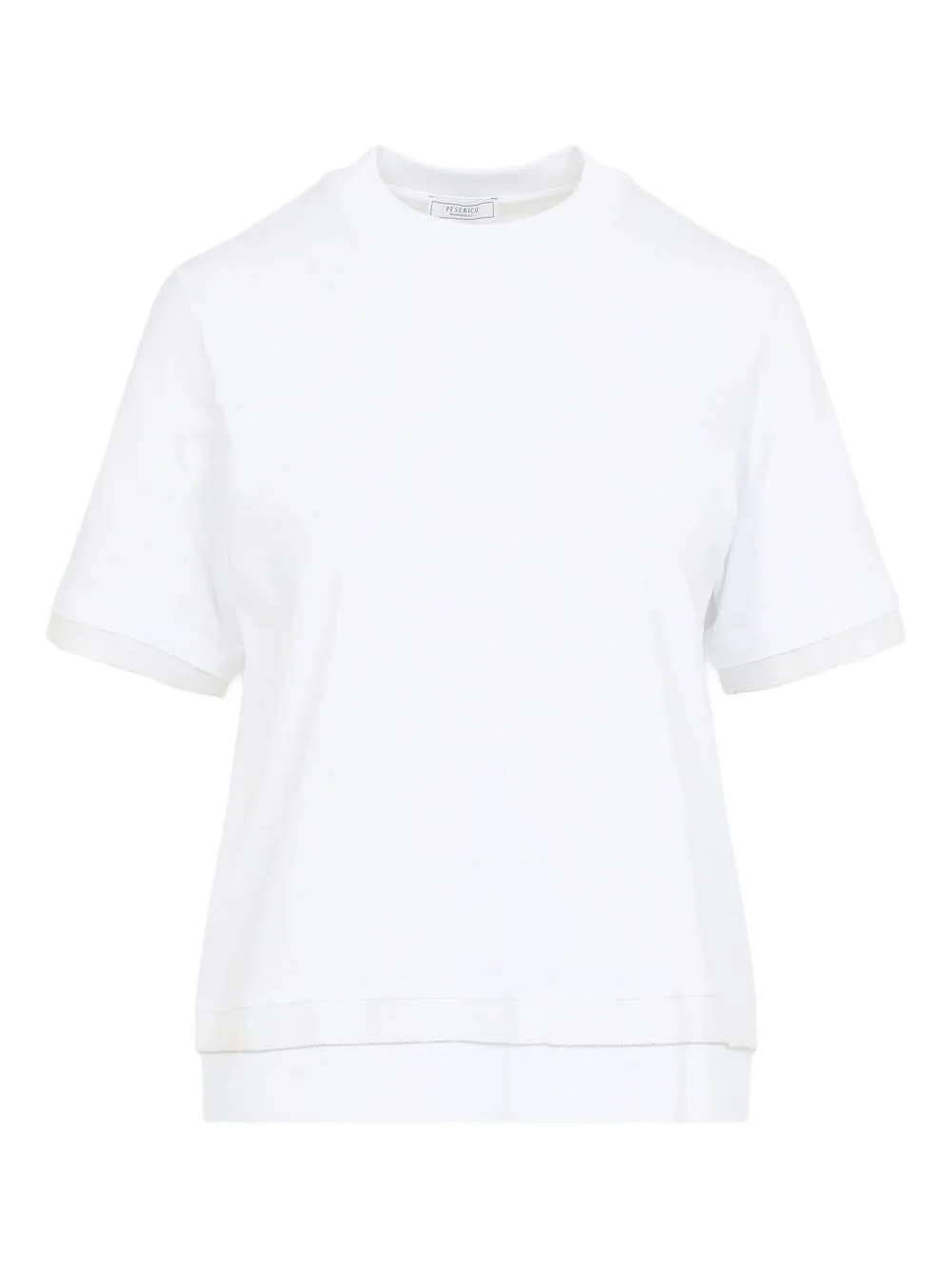 short-sleeve T-shirt Highlights - White - Layered design - Short sleeves - Round neck - Tonal stitching - Straight hem Made in Italy Composition Cotton 95%, Elastane 5% Washing instructions Read Manufacturer Guidelines