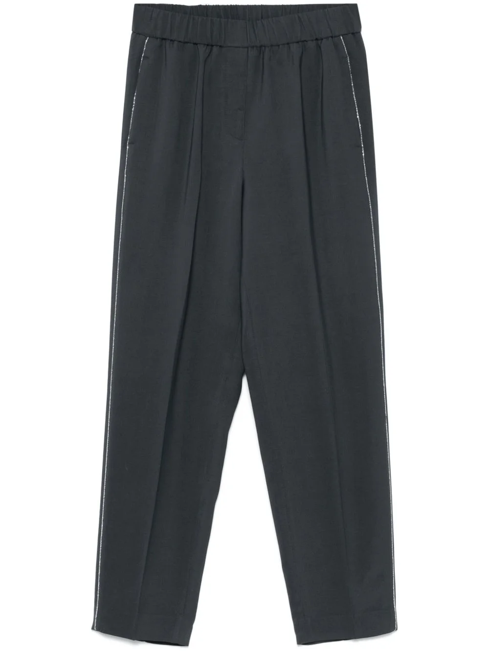 tapered trousers Highlights - Anthracite grey - Elasticated waistband - Two side inset pockets - Two rear welt pockets Made in Italy Composition Outer: Viscose 98%, Elastane 2% Lining: Acetate 61%, Cupro 39% Washing instructions Dry Clean Only