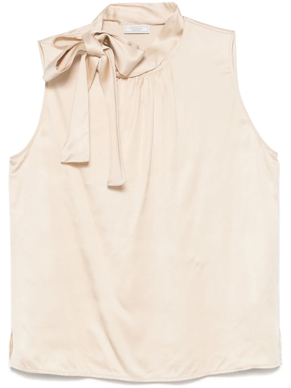 tied-neck blouse Highlights - Beige - Button fastening at the shoulder - Sleeveless - Short side slits - Gathered detailing Made in Italy Composition Viscose 100% SIZE & FIT Model measurements Height 5 ft 10 in(1.78 m) Bust/Chest 33.85 in(86 cm) Hips 36.61 in(93 cm) Waist 26.77 in(68 cm) FittingInformation Designed for a relaxed fit, this piece allows for comfort and movement when worn Made from a lightweight non-stretch fabric Washing instructions Hand Wash