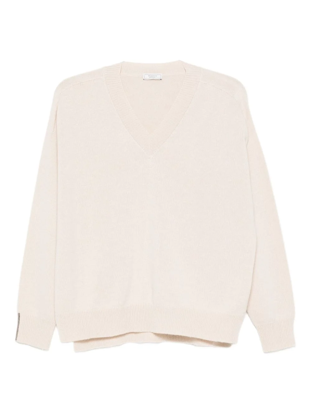V-neck cashmere sweater Highlights - Light beige - Cashmere - V-neck - Long sleeves - Ribbed cuffs - Straight hem Made in Italy Composition Cashmere 100% SIZE & FIT Model measurements Height 5 ft 10 in(1.78 m) Bust/Chest 33.85 in(86 cm) Hips 36.61 in(93 cm) Waist 26.77 in(68 cm) Washing instructions Hand Wash