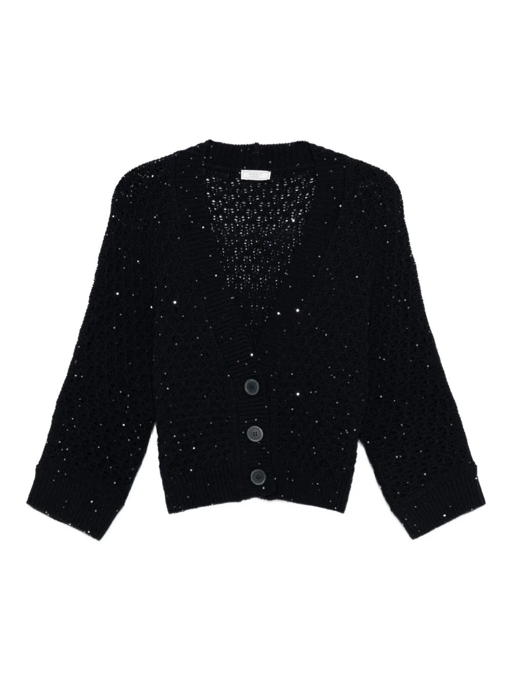 sequin-embellished cardigan Highlights - Navy blue - Sequin embellishment - Button fastening - V-neck - Open knit Made in Italy Composition Virgin Wool 100% SIZE & FIT Model measurements Height 5 ft 10 in(1.78 m) Bust/Chest 33.46 in(85 cm) Hips 36.22 in(92 cm) Waist 23.22 in(59 cm) Washing instructions Hand Wash