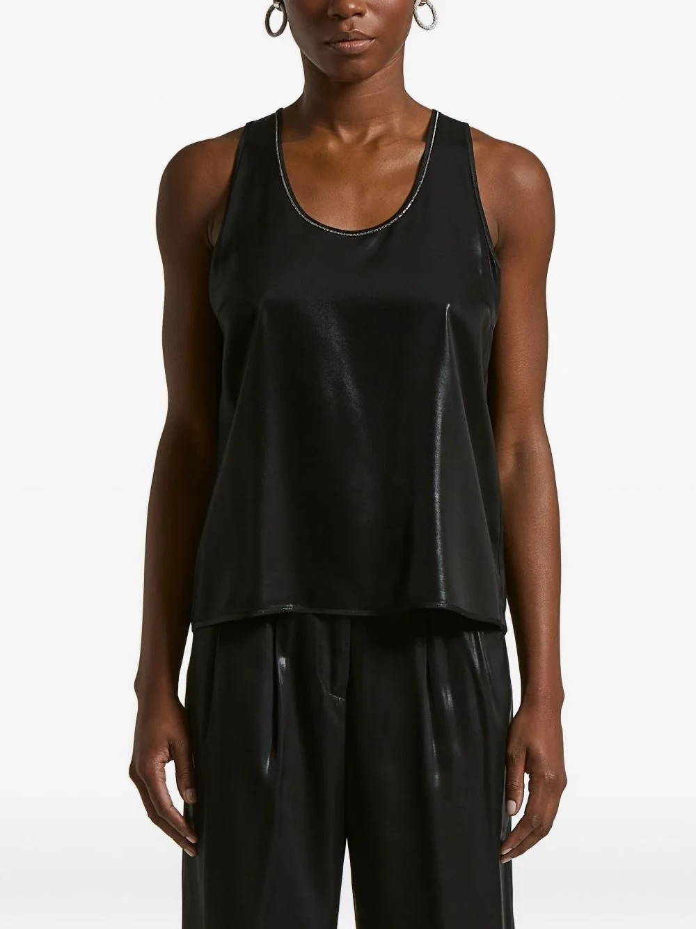 U-neck trim top Highlights - Black - Piped trim - Sleeveless - U-neck Made in Italy Composition Viscose 100% Washing instructions Read Manufacturer Guidelines