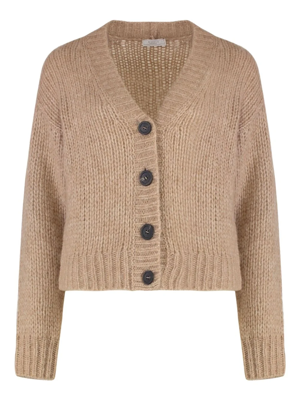 V-neck cardigan Highlights - Beige - V-neck - Button fastening - Long sleeves - Ribbed knit Made in Italy Composition Alpaca Wool 50%, Alpaca 50% Washing instructions Read Manufacturer Guidelines
