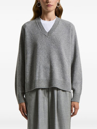 V-neck ribbed sweater Highlights - Grey - V-neck - Ribbed hem - Ribbed cuffs - Ribbed neckline - Long sleeves Made in Italy Composition Fabric 100% Washing instructions Read Manufacturer Guidelines