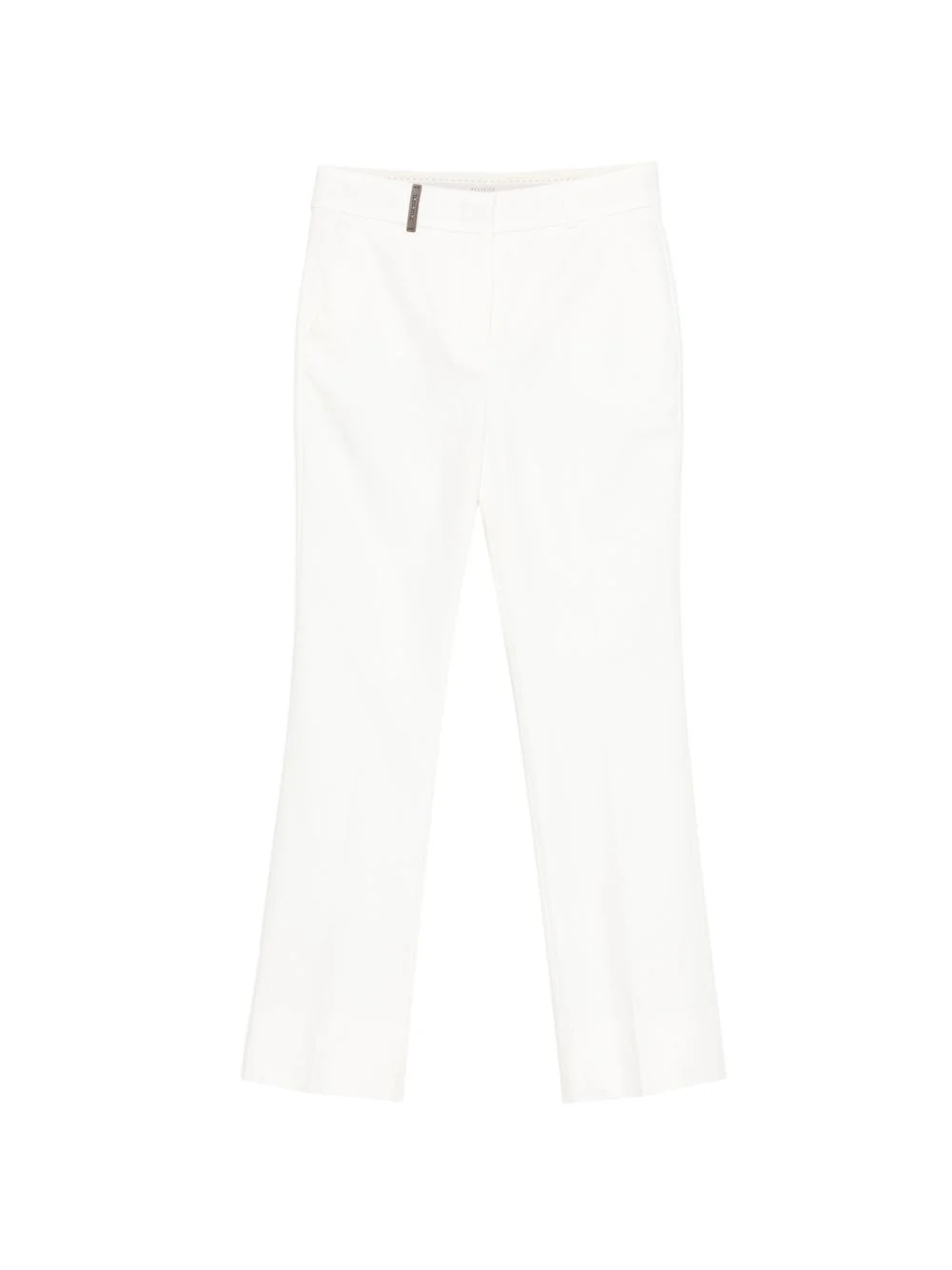 white trousers Highlights - White - Button and hook fastening - Belt loops Made in Italy Composition Outer: Cotton 60%, Viscose 36%, Elastane 4% Lining: Acetate 61%, Cupro 39% Washing instructions Machine Wash