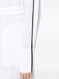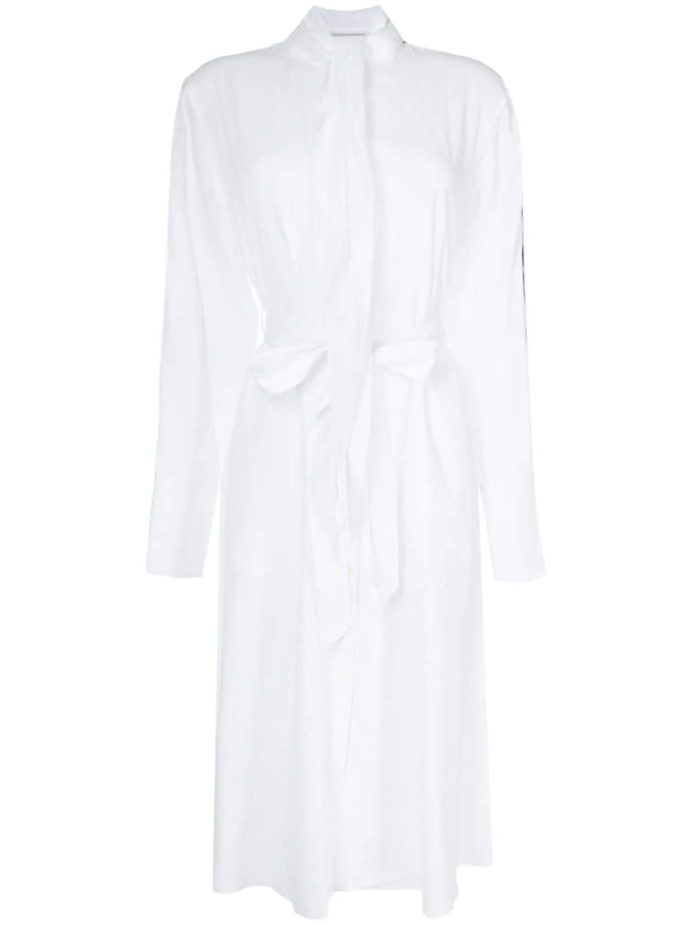 belted-waist button-down dress Highlights - Optical white - Round neck - Belted waist - Front tie fastening - Front button fastening - Long sleeves - Buttoned cuffs - Straight hem - Mid-length Made in Italy Composition Body: Viscose 67%, Cotton 33% SIZE & FIT Model measurements Height 5 ft 10 in(1.78 m) Bust/Chest 29.13 in(74 cm) Hips 35.43 in(90 cm) Waist 23.62 in(60 cm) FittingInformation Designed to be unstructured, offering a loose fit throughout The adjustable tie waist gives a more adaptable and personalised fit Made from a midweight non-stretch fabric This piece fits true to size – take your usual size