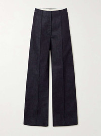 EDITORS'NOTES Peter Do returned to the fundamentals of fashion design for his Spring '24 collection. Debuted on the runway, these 'Hollywood' jeans are smartly tailored from denim and have raised seams tracing through the wide legs. SIZE & FIT Model measurements: - Fits true to size, take your normal size - High-rise, designed for a wide-leg fit - Mid-weight, non-stretchy fabric - Size Small jeans have an inside leg of 32"/ 82cm - Model is 180cm/ 5’11” and is wearing a size Small - Bust: 77cm/ 30.5” - Waist: 60cm/ 23.5” - Hip: 92cm/ 36” DETAILS & CARE - Navy denim - Concealed hooks and zip fastening along front - 100% cotton - Dry clean