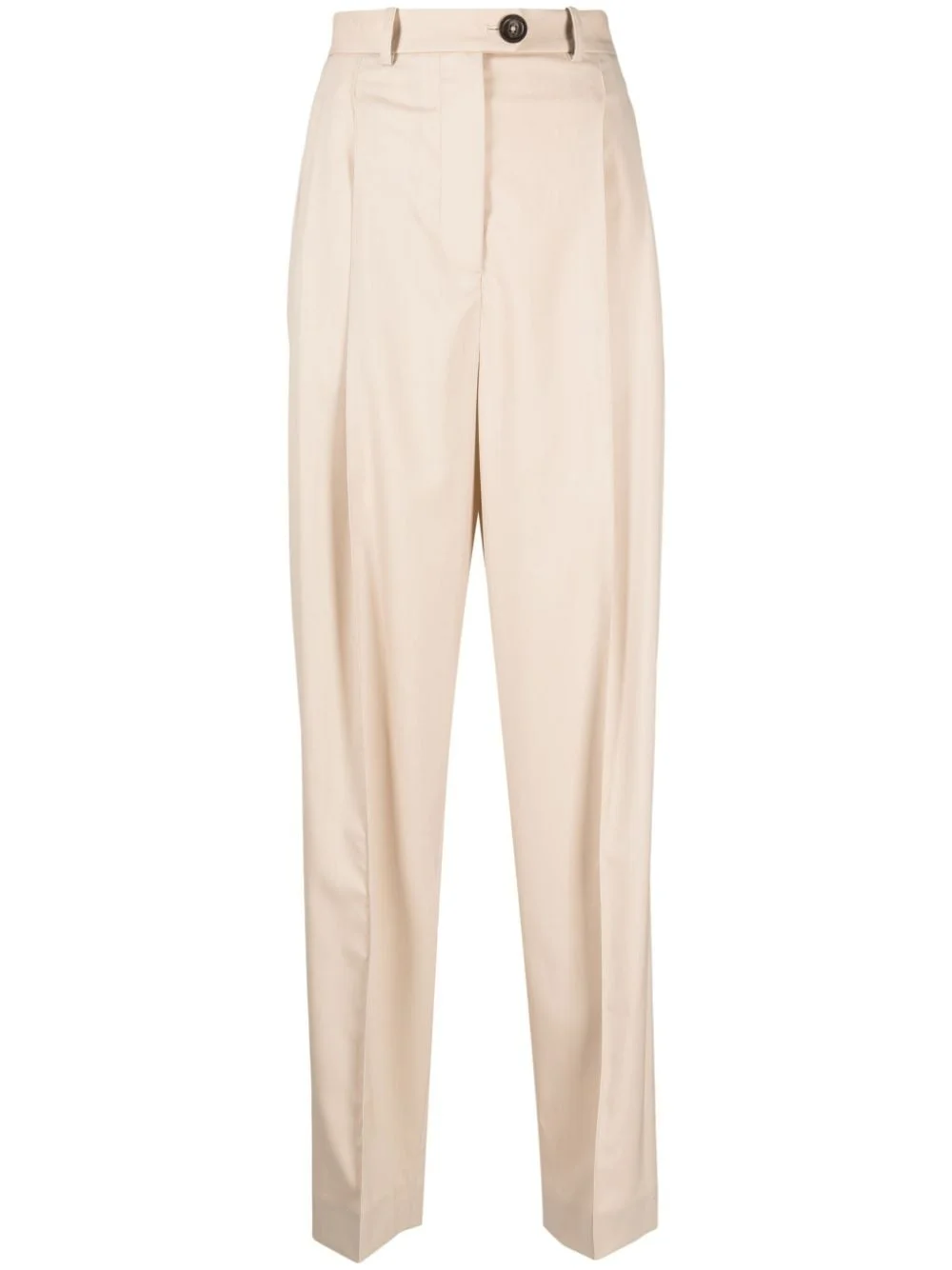 pleat-detailing button-fastening tapered trousers Highlights - Sand beige - Virgin wool - Pleat detailing - Belt loops - Off-centre front button fastening - Two side slit pockets - Two rear jetted pockets - Straight leg Made in United States Composition Virgin Wool 100% SIZE & FIT Model measurements Height 5 ft 10 in(1.77 m) Bust/Chest 31.49 in(80 cm) Hips 35.43 in(90 cm) Waist 25.19 in(64 cm) FittingInformation Designed for a tapered fit, these trousers allow for a close fit at the waist and a loose unrestricted fit over the leg with a closer fit towards the ankle Made from a midweight non-stretch fabric This piece fits true to size – take your usual size Washing instructions Read Manufacturer Guidelines