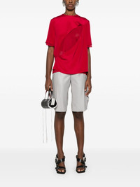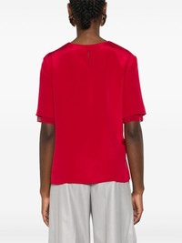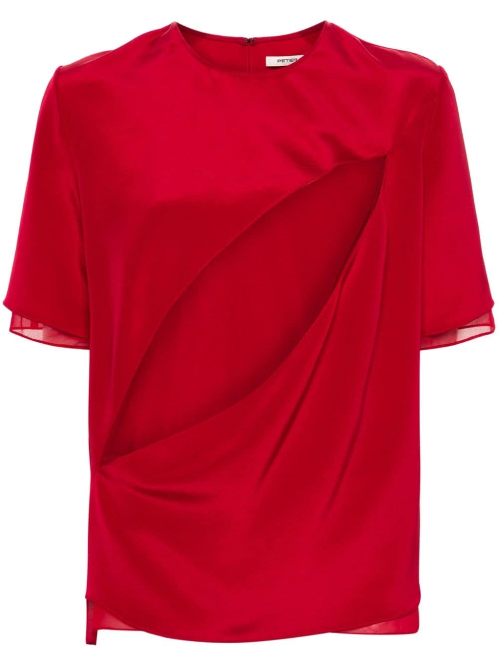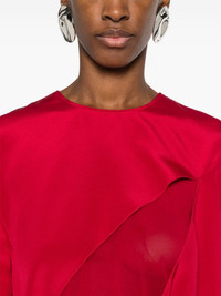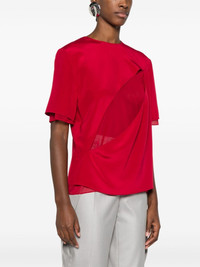 Slash cut-out silk blouse Highlights - Crimson red - Silk - Satin finish - Layered design - Round neck - Short sleeves - Front cut-out detailing - Semi-sheer panel to the front - Straight hem - Keyhole detail to the rear with hook fastening Made in United States Composition Silk 100% SIZE & FIT Model measurements Height 5 ft 10 in(1.77 m) Bust/Chest 29.92 in(76 cm) Hips 34.25 in(87 cm) Waist 22.83 in(58 cm) FittingInformation Designed for a relaxed fit, this piece allows for comfort and movement when worn Made from a lightweight non-stretch fabric This piece fits true to size – take your usual size