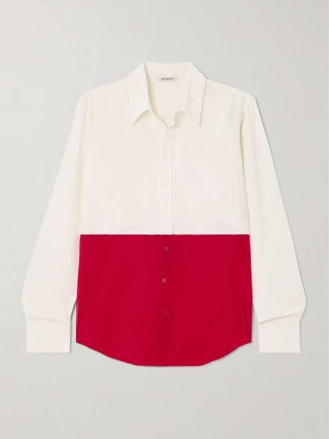 Just as the name suggests, Peter Do's T-shirt has a 'Slash' across the front, exposing the chiffon layer underneath. It's cut from silk and has a slightly loose shape. Wear yours with relaxed tailoring. Size & Fit - Fits true to size, take your normal size - Intended for a slightly loose fit - Lightweight, non-stretchy fabric - Model is 183cm/ 6'0" and is wearing a size Small Model measurements: - Bust: 79cm/ 31" - Waist: 61cm/ 24" - Hip: 85cm/ 35.5" Details & Care - Ivory silk and silk-blend chiffon - Hook-fastening keyhole at back - Fabric1: 100% silk; fabric2: 92% silk, 8% elastane - Dry clean