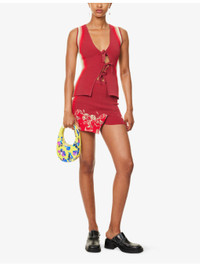 PRODUCT DETAILS - PH5 stretch-woven mini skort - 71.3% viscose, 17.5% rayon, 9.4% polyester, 1.8% elastane - Slim fit, mid-waist, elasticated waistband, split at front, cherry print at front and back, all-over knitted, internal knitted shorts - Machine wash cold - True to size - Size small: length 14in / 36cm - Model is 5ft 10in/1.78m and wears a size small - Midweight, stretchy Ref: R04483313