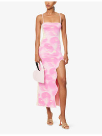 PRODUCT DETAILS - PH5 stretch-woven maxi dress - 71.3% viscose, 17.5% rayon, 9.4% polyester, 1.8% elastane - Slim fit, straight-across neckline, detachable adjustable shoulder straps, all-over abstract print, all-over knitted, wavy split at front - Machine wash cold - True to size - Size small: length 52in / 132cm - Model is 5ft 10in/1.78m and wears a size small - Midweight, stretchy Ref: R04483307