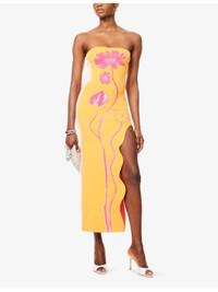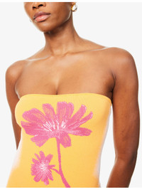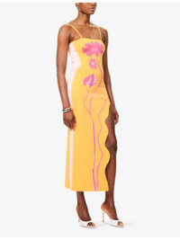 PRODUCT DETAILS - PH5 knitted maxi dress - 71.3% viscose, 17.5% rayon, 9.4% polyester, 1.8% elastane - Slim fit, square neck, detachable adjustable shoulder straps, flower print and wavy split at front, all-over knitted - Machine wash at 30°C - True to size - Size small: length 53in / 135cm - Model is 5ft 10in/1.78m and wears a size small - Midweight, stretchy Ref: R04483332