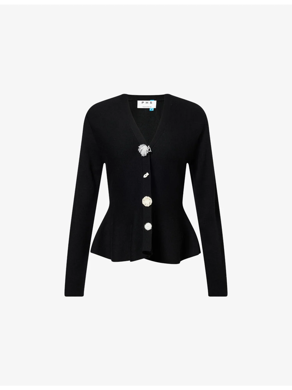 PRODUCT DETAILS - PH5 merino wool-blend - 35% viscose, 35% nylon, 30% merino wool - Concealed popper fastening - Regular fit, v-neck, long sleeves, beaded embellishments at placket, flared at waist - Hand wash cold - True to size - Model is 5ft 10in/1.78m and wears a size small - Midweight, stretchy Ref: R04565550