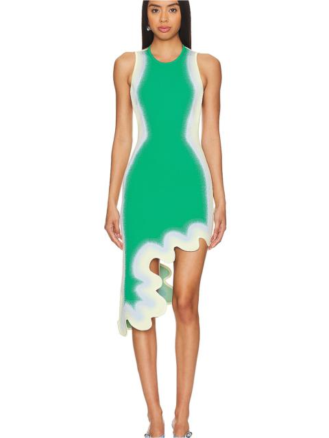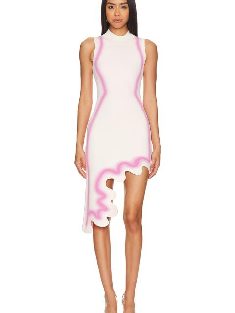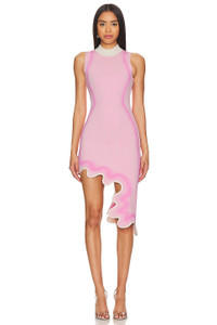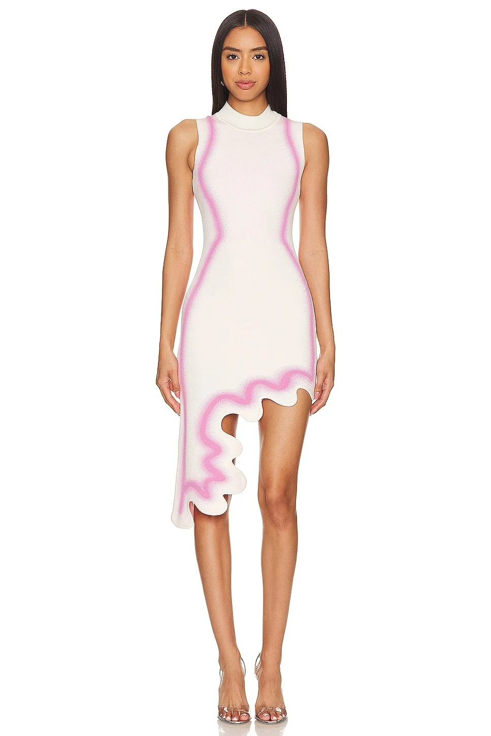 - 76.7% viscose 21.7% recycled nylon 1.6% spandex - Made in China - Hand wash - Unlined - Pull-on styling - Asymmetric scalloped hem - Midweight ponte knit fabric - Revolve Style No. PH5R-WD5 - Manufacturer Style No. SS24DR201-B