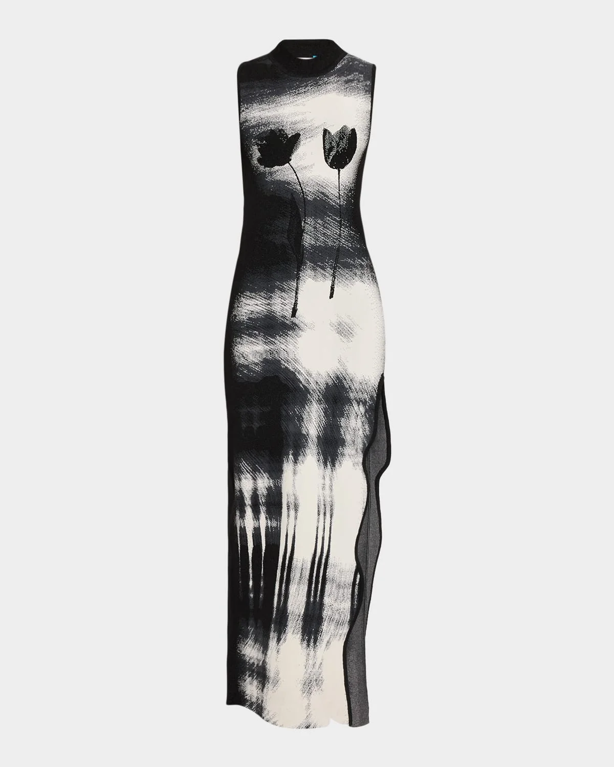 - PH5 "Yuki" knit dress in an abstract design with two floral stem prints - Crew neckline - Sleeveless - Wavy asymmetric thigh-high slit; approx. 28"L - Full length - Body-skimming silhouette - Slipover style - Viscose - Machine wash cold - Imported