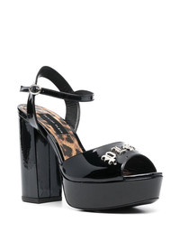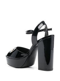 100mm logo-plaque platform sandals black calf leather patent finish silver-tone logo plaque open toe buckle-fastening ankle strap platform sole 100mm high block heel Imported Composition Sole: Calf Leather 100% Outer: Calf Leather 100% Lining: Calf Leather 100% SIZE & FIT Measurement CIRCUMFERENCE 8.66 in(22 cm) HEEL 4.72 in(12 cm) HEIGHT 2.95 in(7.5 cm) Sole height 0.39 in(1 cm)