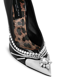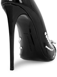 105mm crystal-embellished patent leather pumps Highlights - Black - Calf leather - Patent finish - Crystal embellishment - Pointed toe - Metal toecap - Silver-tone hardware - Slip-on style - Leopard print lining - Branded insole - 105mm high stiletto heel - Leather sole Made in Italy Composition Sole: Calf Leather 100% Lining: Calf Leather 100% Outer: Patent Calf Leather 100%