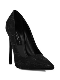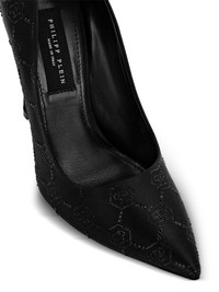 105mm Decollete pumps Highlights - Jet black - Leather - Monogram pattern - Rhinestone embellishment - Pointed toe - Slip-on style - Branded leather insole - 105mm stiletto heel - Leather sole Made in Italy Composition Outer: Viscose 72%, Silk 28% Lining: Sheepskin 100% Sole: Calf Leather 100% SIZE & FIT Measurement HEEL 4.13 in(10.5 cm)