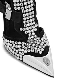 120mm Skull pumps Highlights - Silver-tone - Calf suede - Rhinestone embellishment - Skull applique - Decorative buckle detailing - Pointed toe - Rear zip fastening - Branded insole - High stiletto heel Made in Italy Composition Suede 100% SIZE & FIT Measurement HEEL 4.13 in(10.5 cm)