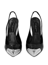 120mm Crocco pumps Highlights - Jet black - Calf leather - Patent finish - Embossed crocodile effect - Skull applique - Crystal embellishment - Contrasting toecap - Pointed toe - Slingback strap - Branded leather insole - 120mm stiletto heel - Leather sole Made in Italy Composition Outer: Calf Leather 100% Sole: Calf Leather 100% Lining: Calf Leather 100% SIZE & FIT Measurement HEEL 4.72 in(12 cm)